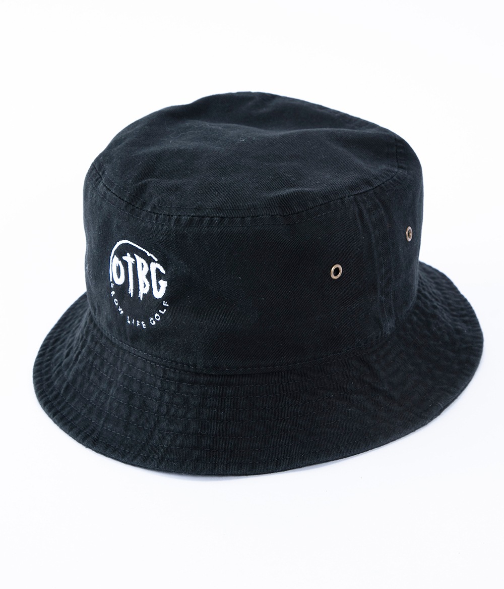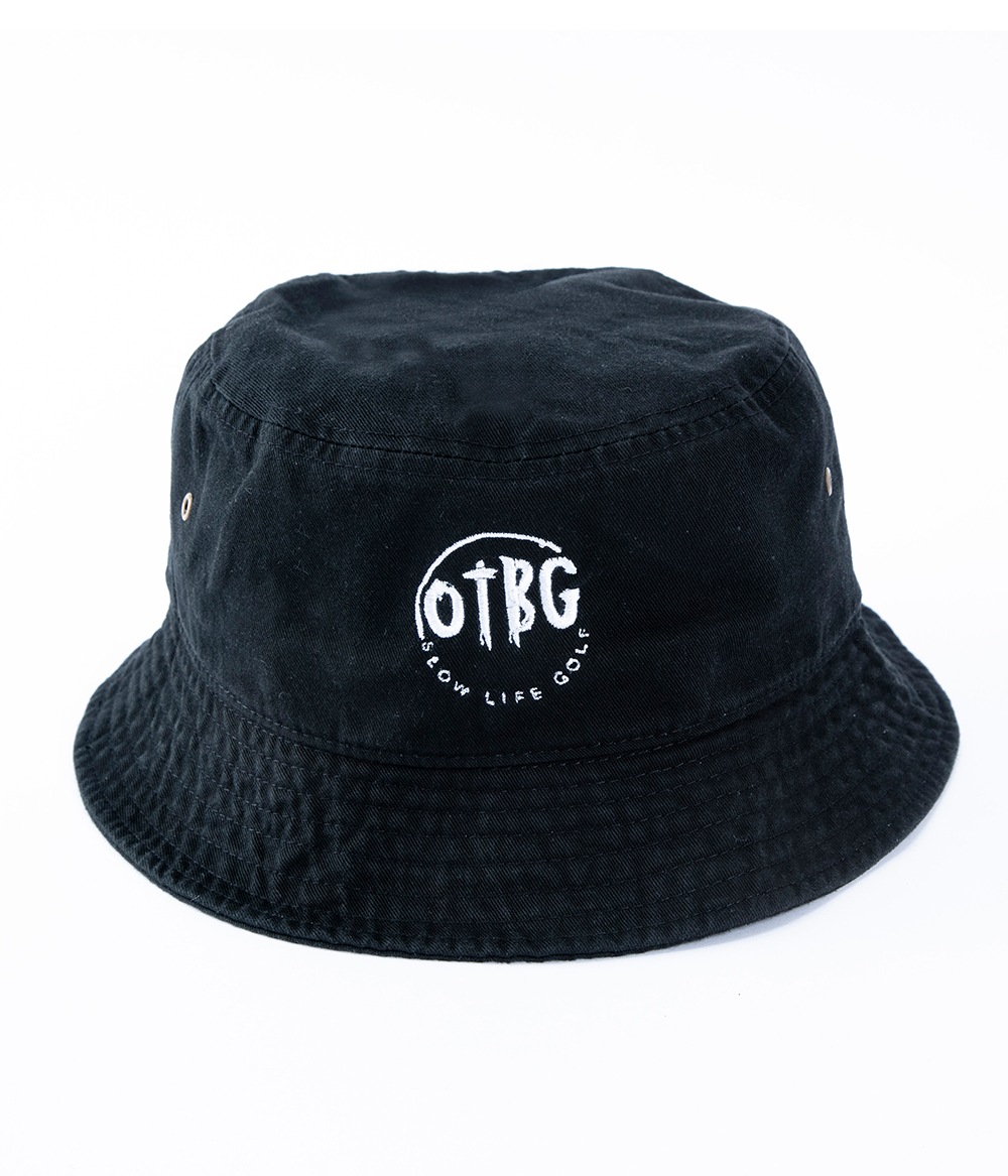 シンプルながらも存在感のあるOTBGバケットハット。ブラックのボディにホワイトのブランドロゴ刺繍が映えるデザインで、ゴルフコースでもストリートでも活躍する万能アイテムです。