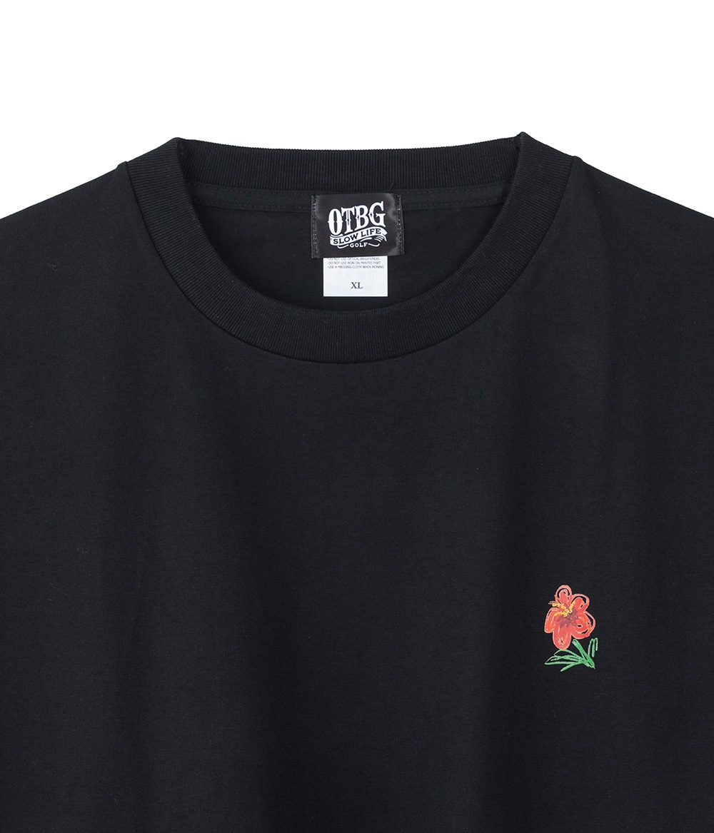 胸元には、鮮やかなハイビスカスをワンポイントで刺繍。主張しすぎないサイズ感ながら、存在感と遊び心をしっかり宿しています。OTBGらしいストリートとアートの融合をワンモチーフで表現しました。